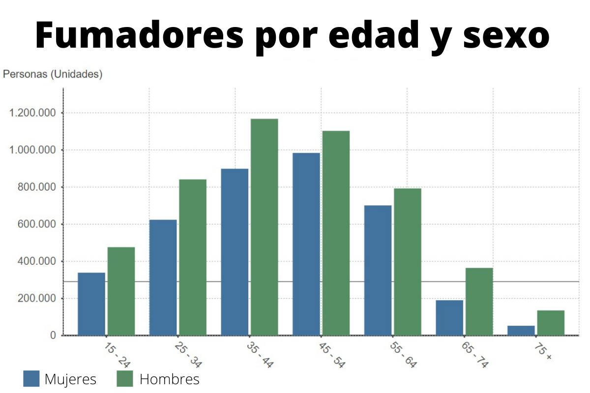 El 22% de la población en España afirma fumar a diario, el 2% es fumador ocasional, mientras que el 25% se declara exfumador. Por otra parte, más de la mitad se declara no fumador, siendo esto más frecuente en mujeres a partir de los 75 años.
