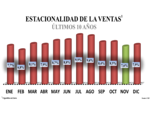 La distribución de las ventas de cigarrillos a lo largo del año y de forma histórica, sitúa como peores meses del año, tanto a febrero como a noviembre, pero este año las ventas obtenidas han superado a meses como enero, febrero, abril, mayo e incluso octubre, lo que nos hace suponer que cerraremos el año 2021 con un ligero incremento respecto al anterior.